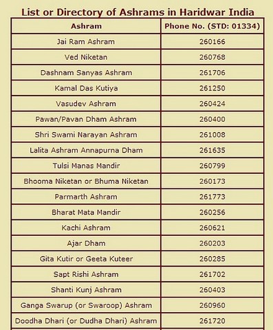 Indie. Informacje uzupełniające:Ashram, Phone No. (STD: 0135)